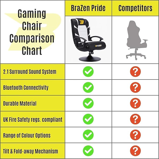 View Brazen Pride 2.1 Bluetooth Gaming Chair Pictures. And if you're picking a chair that's supposed to do more than provide a space for seating. Relax in this chair and play your favourite game, watch that blockbuster movie or listen to that chart busting music.