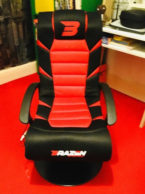 Brazen pride 2.1 bluetooth surround sound gaming chair is a very robust comfortable piece of furniture with the added benefit of 2.1 surround sound speakers.