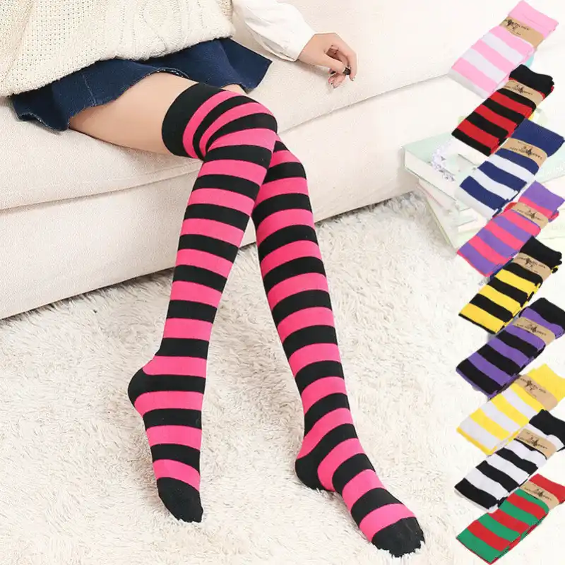 1 pair compression warmer cotton knit rainbow stripes knee high socks stockings. The best socks for a warm winter. One size sits slightly above knee warm and comfortable invisible and reinforced heel and toe also available in: Over the knee socks plain ribbed 002.